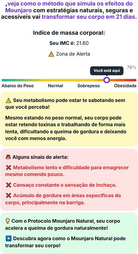 Responda essa avaliação de 2 minutos e receba o Protocolo Mounjaro Natural personalizado do Dr Strevant, para emagrecer naturalmente simulando os efeitos do mounjaro, sem colaterais, sem gastar horrores e sem injeção.